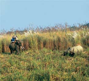 With highly trained elephants, environmentally cared-for vehicles and safe river boats, safaris can cover the surrounding jungles in search of wildlife – the Royal Bengal tiger, Asian One-horned rhinoceros, Indian bison – known as Gaur in Nepal and a wealth of bird life.